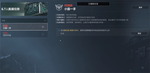 目标:使用任意精确射手步枪,在机密或绝密行动中击败5名敌方士兵。