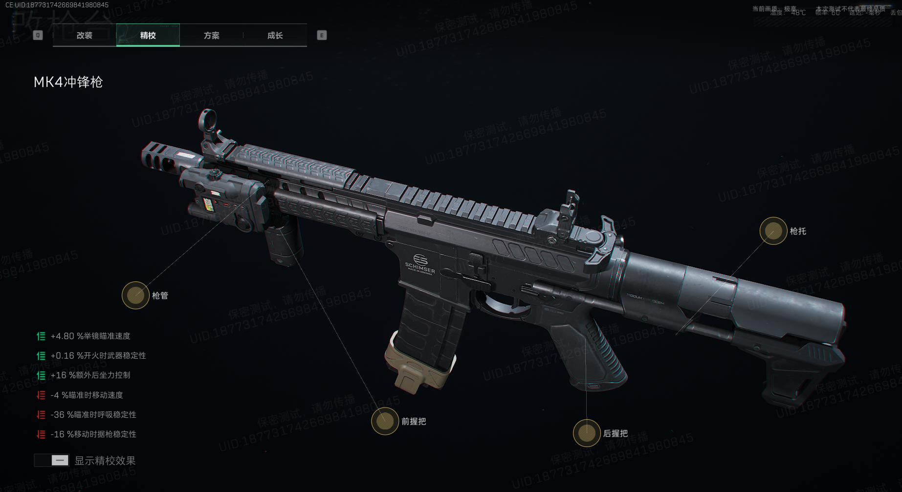 具体的精校方案如下,可以获得4.8%的开镜速度,以及16%额外后坐力控制。