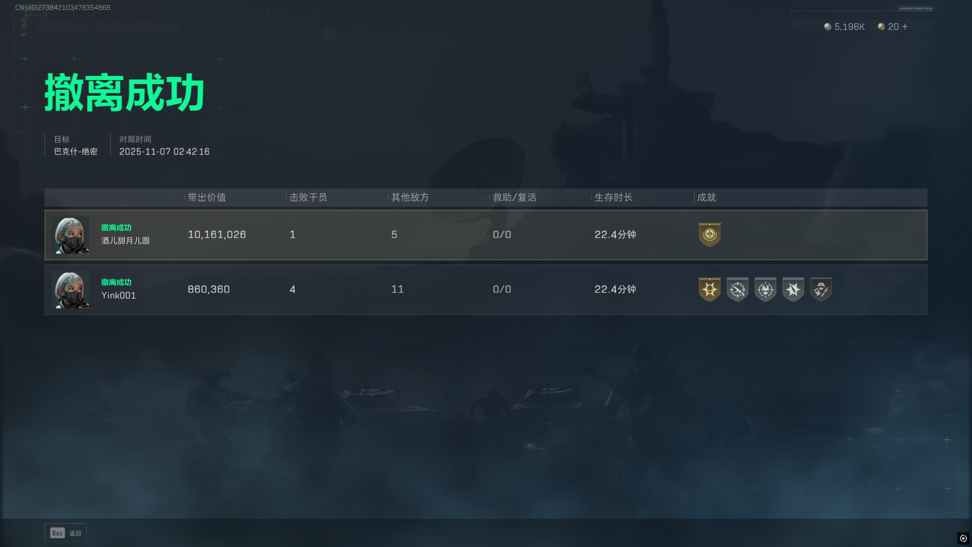 2、飞鼠撤离:20分钟后开启,提交2个干员狗牌,仅限1人撤离,适合背包丰厚、闸点被占的情况;