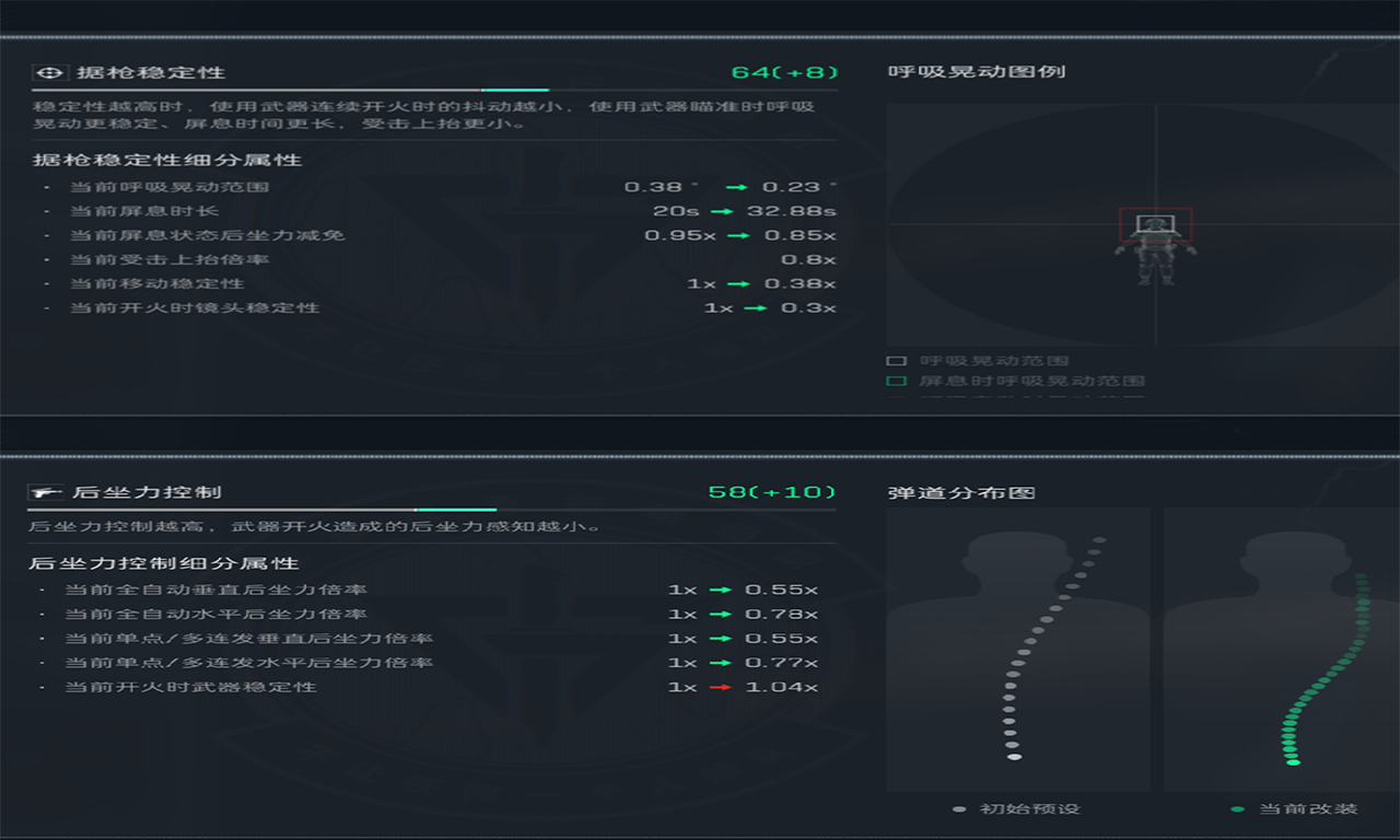 改装后武器兼顾了精准度与持续火力,通过缩小瞄准晃动范围、延长屏息时间、降低后坐力倍率,既提升了中远程单点精准度,也增强了近距离连射的可控性,综合性能更适应复杂战斗场景。