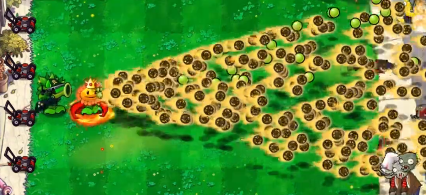 除了稳定的基础输出,它还拥有强力的随机大招机制,每次发起攻击时,都有 10% 的概率触发大招效果。大招开启后,会向大范围区域散射累计约 500 颗豌豆子弹,密集的豌豆弹幕能覆盖大片战场,对范围内的僵尸形成毁灭性打击,即便是密集的僵尸潮,也能在大招的火力覆盖下被快速清理,成为突破僵尸防线、守护阵地的关键技能。