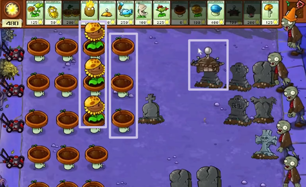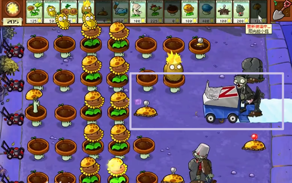 2、阳光向日葵和小盆菇,哪个cd好了就放哪个,速度越快越好,这样我们前期的发育就会很好。