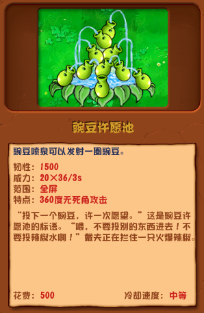 以上就是小编整理带来的植物大战僵尸杂交版豌豆许愿池介绍,更多相关游戏攻略,请关注这里下载站!