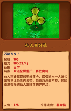 以上就是小编整理带来的植物大战僵尸杂交版仙人三叶草介绍,更多相关游戏攻略,请关注这里下载站!