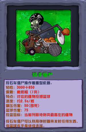 投石车僵尸可以利用弹射器来发射任何东西,但篮球似平是绝佳选择。