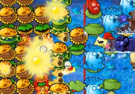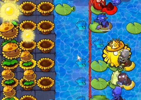 5、最后在水池中种植一列汉堡射手就可以轻松过关了。