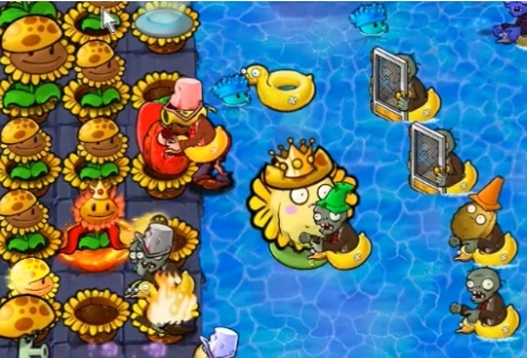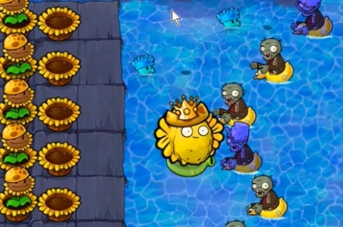 5、最后在甲板和泳池左侧种植多个向日葵女王和汉堡射手就可以轻松过关了。