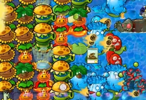 4、然后在第三列中种植两个汉堡射手,在右侧种植多个寒冰豌豆坚果。