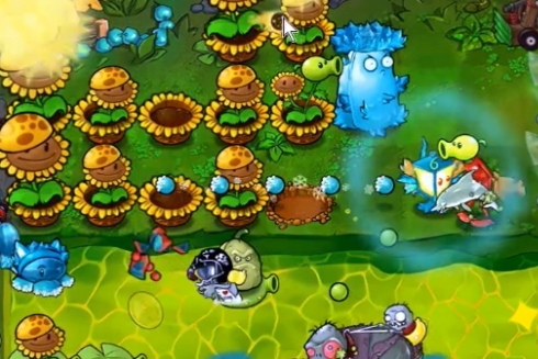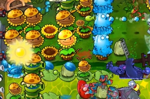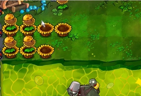 4、然后在上方补充多个阳光向日葵,在睡莲上种植两个汉堡射手。