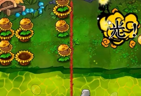 3、在红线右侧种植一个寒冰豌豆坚果和一个火辣坚果。