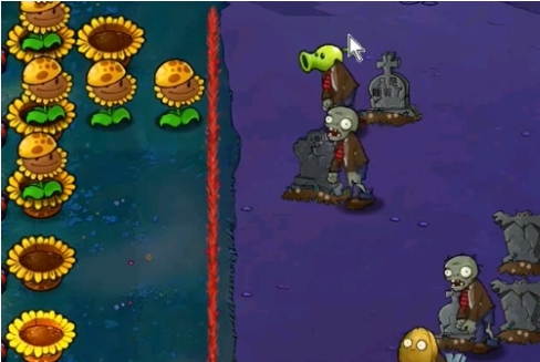 4、继续在左侧补充一列阳光向日葵,在右侧种植一个寒冰豌豆坚果进行输出。