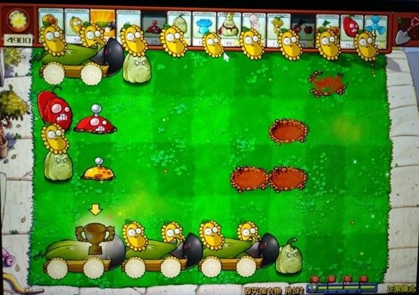 3、把15路向日葵换成大炮,炮多的一路用大蒜辣椒,炮少的一路用黄油辣椒/三线辣椒/三叶草防小鬼。