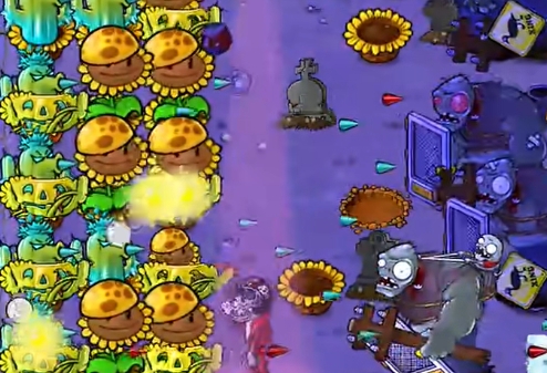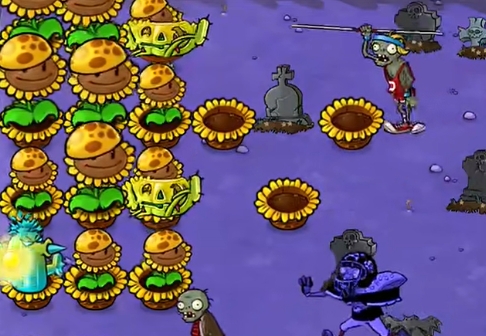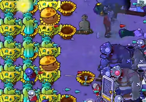 5、将左侧的阳光向日葵都铲除掉,再补充两列寒冰仙人掌就可以过关了。