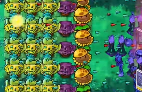 5、最后将左侧三列的阳光向日葵全部铲除,补充三列寒冰仙人掌和仙人掌南瓜头即可。