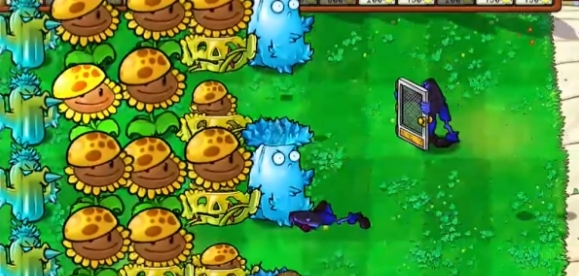 5、最后铲除左侧的阳光向日葵,并补充多个寒冰向日葵即可过关。