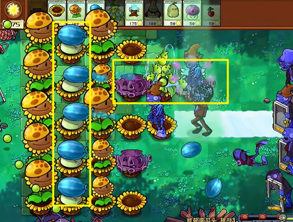 2、在种植向日葵期间,不要轻易放置过多的输出植物,等有了两列花盆和一列向日葵后再去建造冰瓜大喷菇。