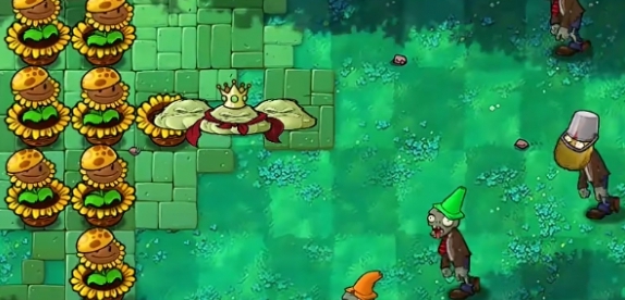 3、在左侧第一列补充四个寒冰仙人掌,在最里侧补充一列阳光南瓜头。