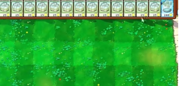 2、先在草坪上种植多个备用资源,将开出的输出类植物种植在左侧。