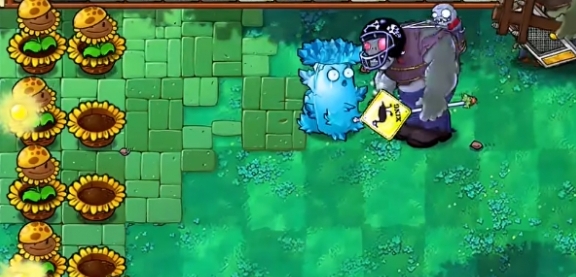 4、将里侧的阳光向日葵铲除,再补充一列寒冰仙人掌。