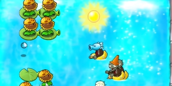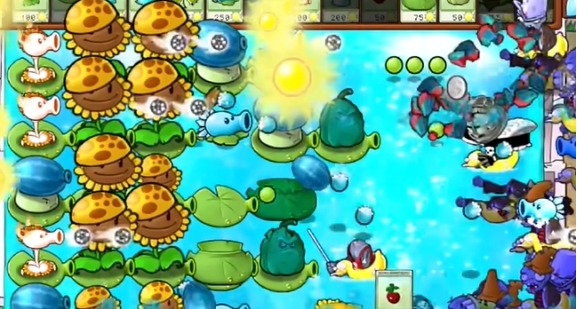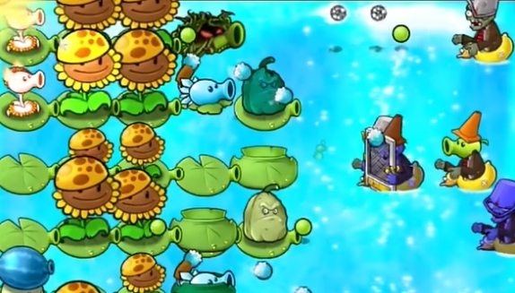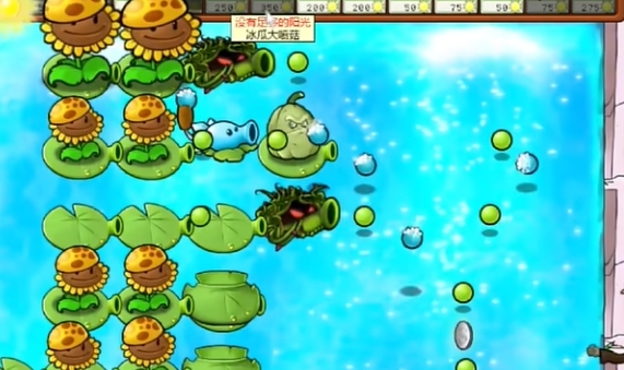 6、在外侧种植多个窝瓜坚果来抵御植物僵尸的射击伤害。