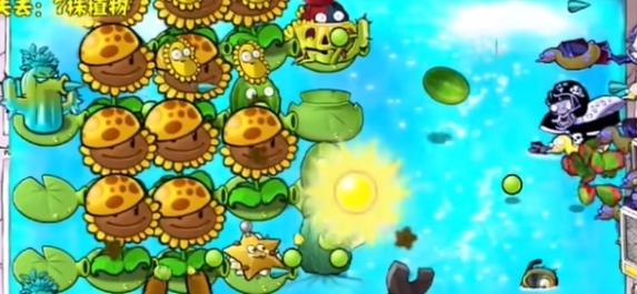 4、在上方继续补充向日葵,在外侧种植一个海兵菇。