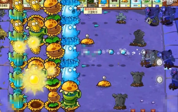 4、能量足够了后面一排就种植满寒冰仙人掌,前面可以放一些汉堡射手。