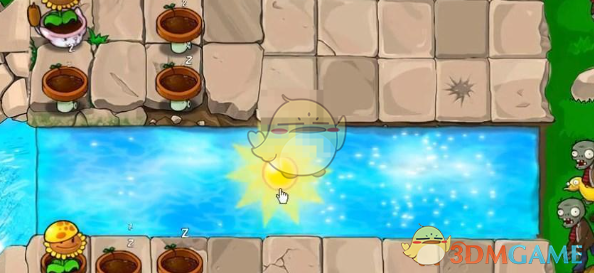 1、植物大战僵尸杂交版挑战模式第61关在后排小盆菇里面种植阳光向日葵收集能量,前面是水池里面也可以安排上豌豆睡莲。