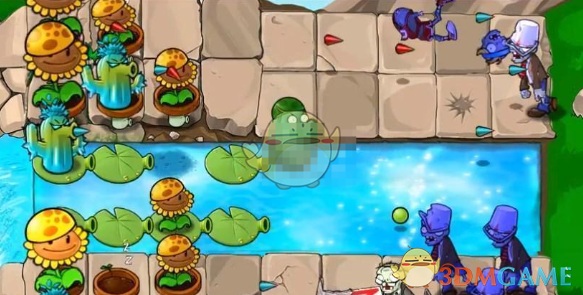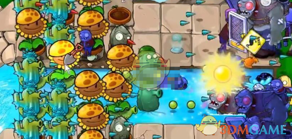 4、后面能量差不多够用了之后就可以将向日葵铲掉一些,换上寒冰仙人掌等攻击植物。