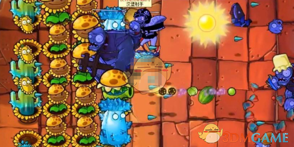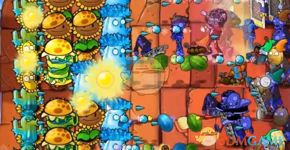 3、在后排放寒冰仙人掌来攻击僵尸,这个攻击距离比较远。