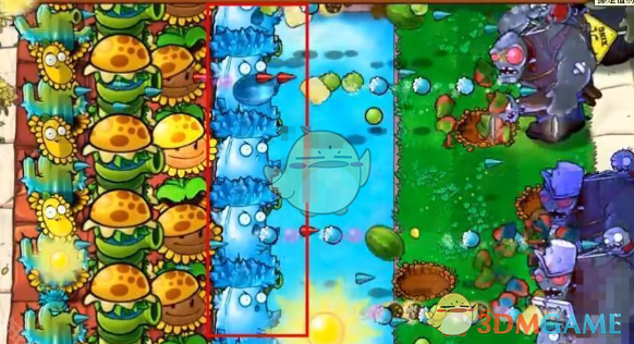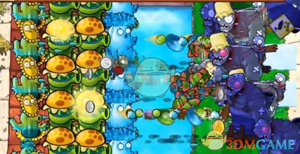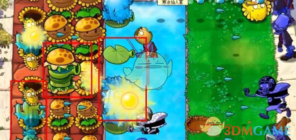 2、在后排种植寒冰仙人掌,这个可以攻击僵尸,前面水池里面放豌豆睡莲。