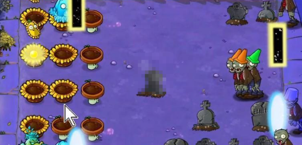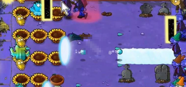 2、后排放寒冰仙人掌来攻击僵尸,前方放坚果来防御。