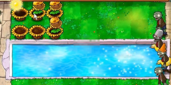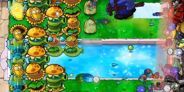 2、在水里种植豌豆睡莲,然后在睡莲上面种植寒冰仙人掌。