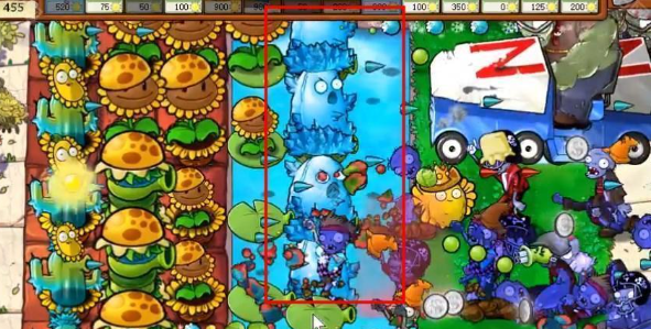 2、打不过的道路上面可以在后面放一些寒冰仙人掌,这个攻击距离远。