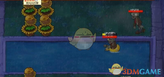 2、在水里放豌豆睡莲,在睡莲上面放寒冰仙人掌。