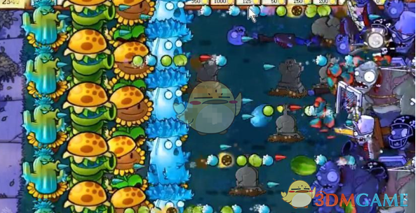 2、在后排放寒冰仙人掌,这个攻击距离远,可以放在最后一排。