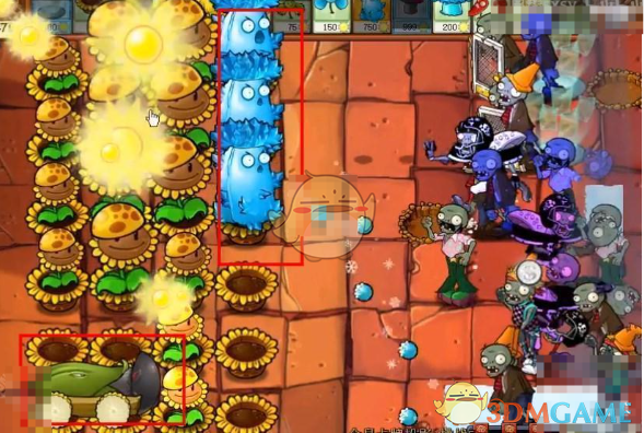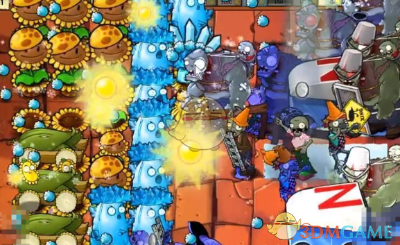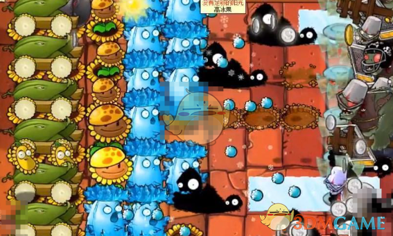 3、前方可以放雪花寒冰菇,这个植物可以满屏攻击,攻击范围大。