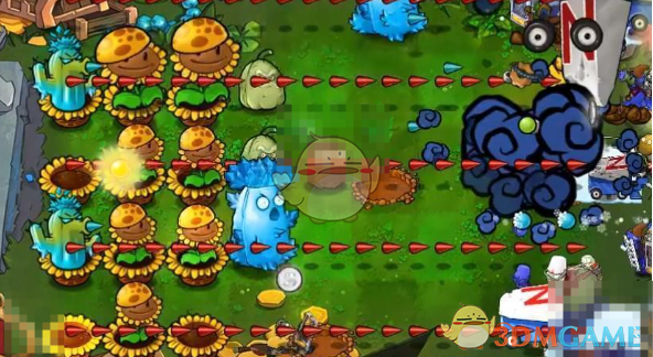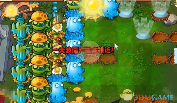 2、在后面放寒冰仙人掌,仙人掌的攻击距离很远,放在最后一排也没关系。