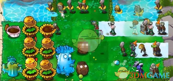 4、在最后一排放寒冰仙人掌来攻击,这个攻击距离远,攻击力也不错。