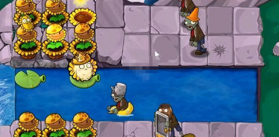 2、在水面上豌豆睡莲,然后在睡莲上面放置至尊vip坚果。