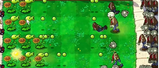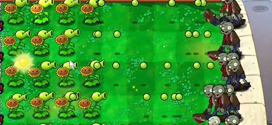 3、在左侧补齐一列豌豆向日葵,提升输出伤害。
