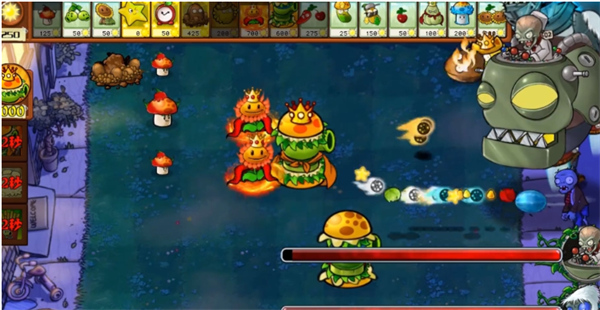 1、美味配方(被动):每25秒生产50阳光/75阳光/100阳光/125阳光/150阳光,每2秒发射8枚/10枚/12枚/14枚/16枚随机子弹