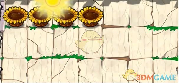 2、首先在左侧第一行放四个阳光花盆。