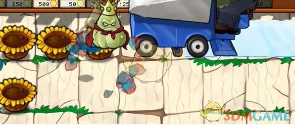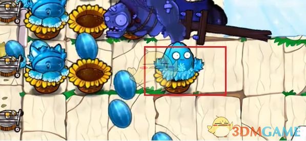 4、接着等图中僵尸到达花盆处后放置一个影流窝瓜王。