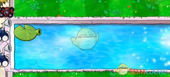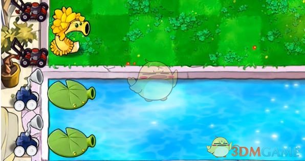 2、首先在水池的最左侧摆放豌豆睡莲。