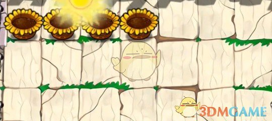 2、首先在左侧第一行放四个阳光花盆。