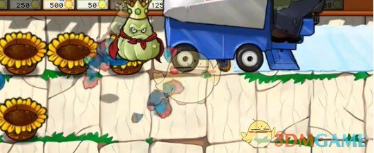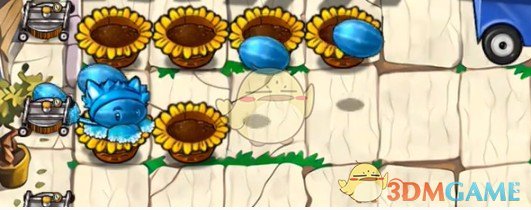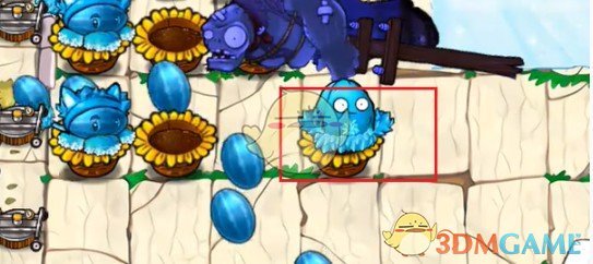 4、接着等图中僵尸到达花盆处后放置一个影流窝瓜王。