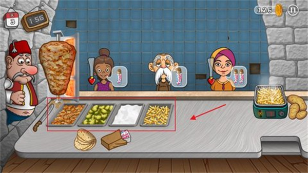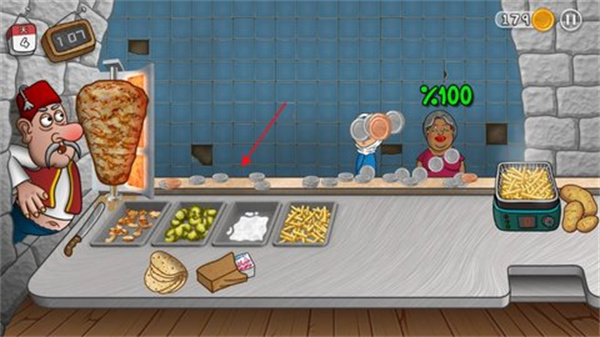 5、将完成的沙威玛交给顾客,点击硬币即可获得金币收益。