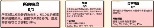 集结天赋仅在作为车头时才适时去点,不建议日常野战使用。天赋加点也主要以增加暴击、暴击伤害和普通攻击的输出为主。