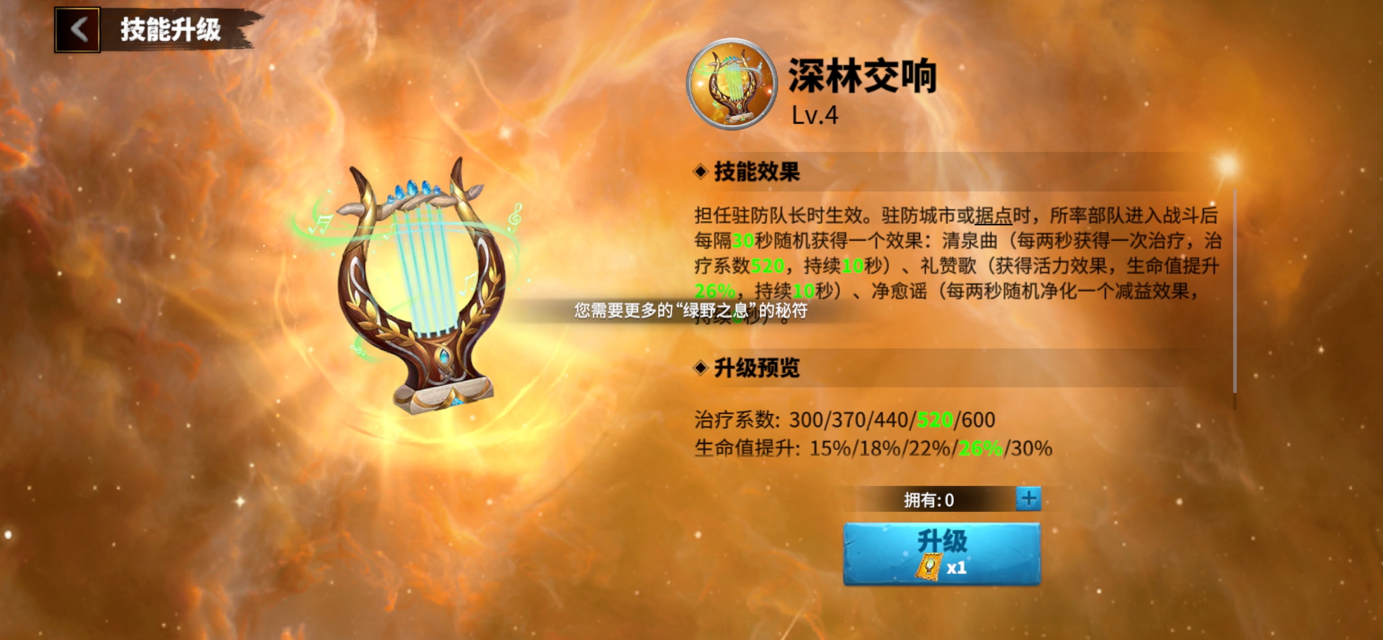 宝物秘符同样用于提升该件宝物技能的等级,技能等级上限为5级,每提升1级需要消耗1张秘符。