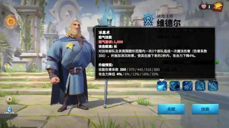 维德尔共有五项技能,分别为:冰息术、王庭法师、寒冬之蚀、霜脉和冬潮凛冽。建议领主们在洗炼的过程中,优先按照1>3>2>4的顺序进行哦~
